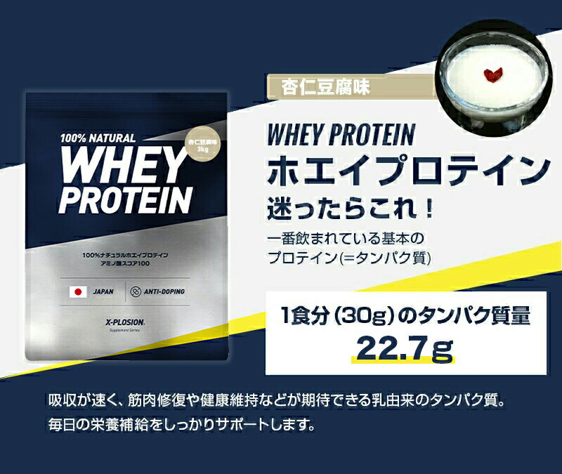 プロテイン エクスプロージョン 100%ホエイプロテイン 杏仁豆腐味 3kg 日本製 男性 女性 X-PLOSION