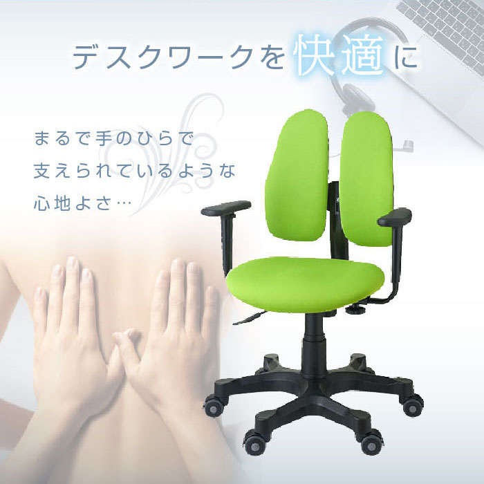 立体的に動く2つの背もたれが腰の負担を和らげ、自然と背筋を伸ばしてくれます。
