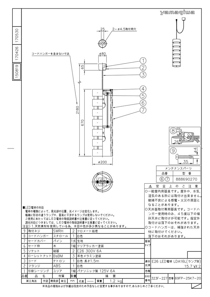 ※ご注意※・ランプ別売り (本製品には付属しておりません)・直送品のためお支払い方法『代金引換』はご利用いただけません 【主な特長】 スウェーデンを代表する照明デザイナー 、ハンス・アウネ・ヤコブソンがデザイン 吟味されじっくり自然乾燥させた北欧産のパイン(松)材を薄くスライスし組み合わせています パイン材を通した光は温かみを感じさせます 【主な仕様】 品名JAKOBSSON LAMP(ヤコブソンランプ) ランプE26 LED電球 100Wタイプ(LDA14)×2 寸法高・670, 巾・φ200, 全長・2180mm 質量1.2kg 材質・仕上げパイン 白木 消費電力28.6W デザイナーHans-Agne Jakobsson その他 ・天然素材を使用している為、木目や色が多少異なることがあります ・引掛シーリング コートハンガー付 ・コードハンガー使用時のみ、45度までの傾斜天井に取付可能 [Tag]ヤコブソン ヤコブソンランプ Jakobsson Lamp 323F-227 323F227 ヤマギワ yamagiwa ハンス アウネ ヤコブソン Hans Agne Jakobsson デザイナー designer インテリア interior 間接光 間接照明 北欧 北欧デザイン 180908-18 0162(注)ご注文後のキャンセルは一切お受けできません。
