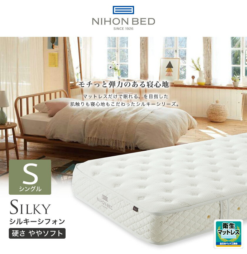 日本ベッド マットレス シルキーシフォン シングル 柔らかめ ソフト ポケットコイルマットレス 国産 メーカー保証付 抗菌防臭 体圧分散 理想の寝姿勢 エッジサポート 正規販売店 送料無料 一人暮らし 新生活