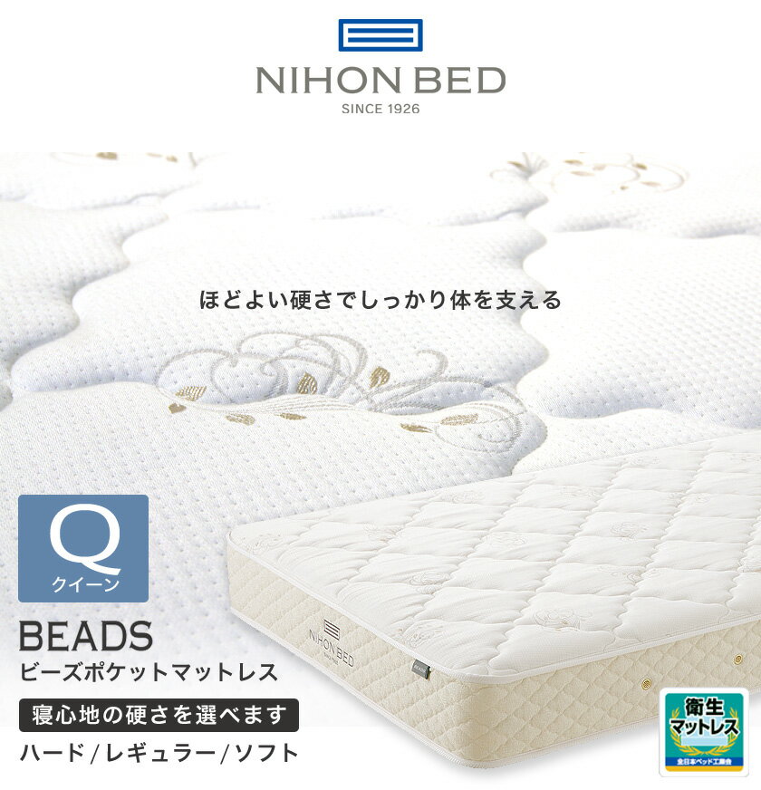 日本ベッド マットレス 選べる硬さ ビーズポケットマットレス クイーン 硬め ふつう 柔らかめ ポケットコイルマットレス 国産 メーカー保証付 抗菌防臭 体圧分散 正規販売店 | ベッド ベッドマット ベッドマットレス ベットマット ポケットコイル