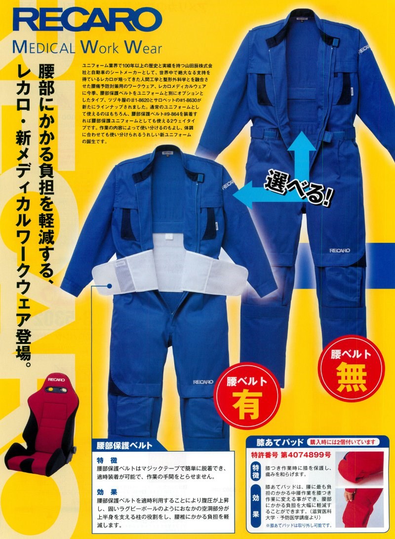 【AUTO-BI/山田辰 8620】【RECARO/レカロ】【綿70%・ポリエステル30%】【長袖つなぎ】【腰痛】【腰ベルト】【膝パッド/膝当て】 腰とヒザを守るレカロメディカルツナギ服 ※実際の商品になるべく近い色を再現しておりますが、ご覧になっているモニターの色の違いにより、実際の商品と色合い等が異なる場合がございます。