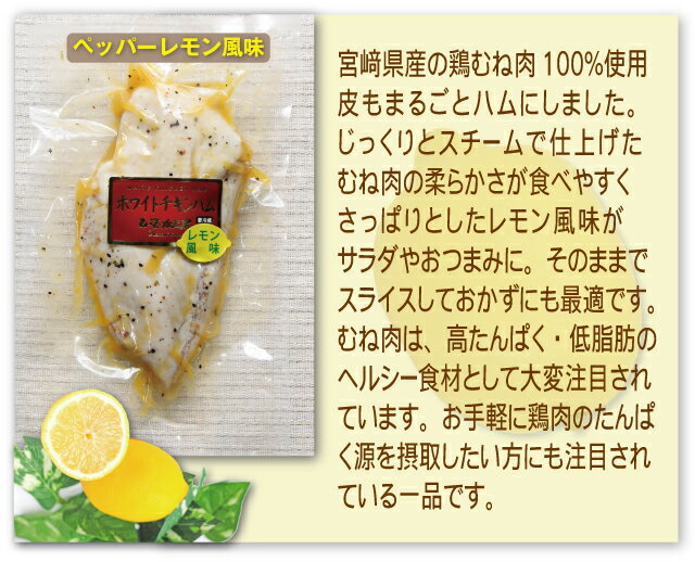 【今だけセール】ホワイトチキンハム(ペッパー・レモン風味【超人気】サラダチキン【むね肉100%】【プロテインフード】【コロナ 生活 応援】