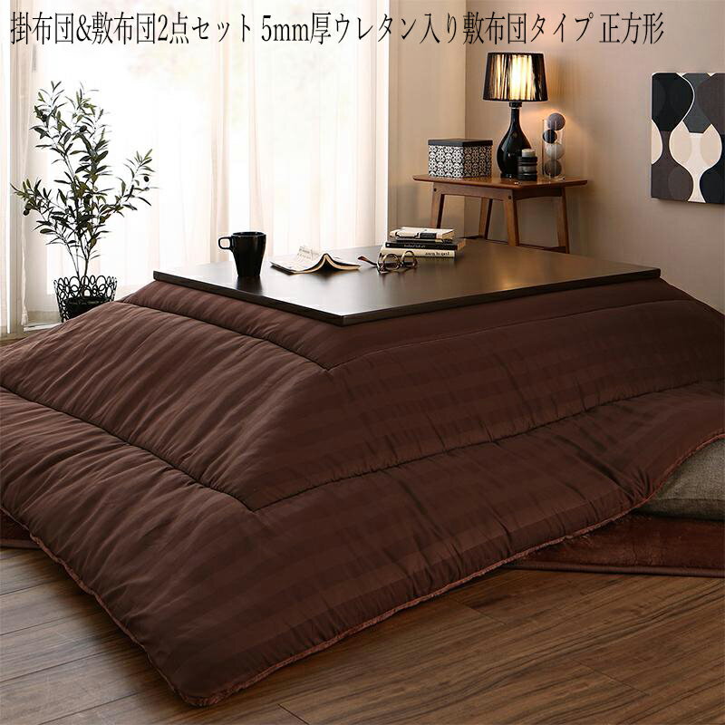 送料無料 こたつ布団シリーズ 掛布団&敷布団2点セット 5mm厚ウレタン入り敷布団タイプ 正方形(75×75cm)天板対応 コタツ布団 炬燵布団 こたつカバー コタツカバー 炬燵カバー 静電気防止 洗える オールシーズン 裏プレミアム毛布つき モダン ストライプボリューム